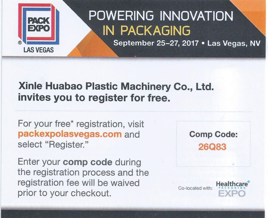 誠邀蒞臨指導:2017第三屆中國特種流延薄膜技術交流與現場演示會時間:2017年4月12日地點:中國河北新樂(新樂華寶塑料機械有限公司)現場開機:2800mm CPE透明包裝復合膜機3500mm纏繞膜機詳情
