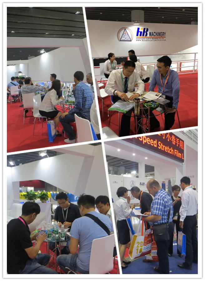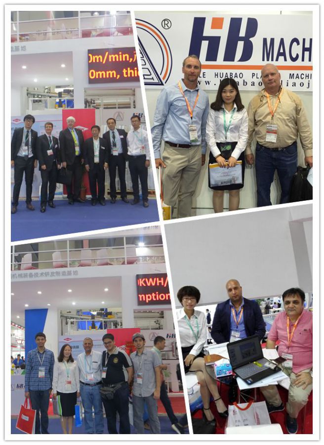在華寶2.1J21的展臺,一臺全自動高速雙四軸八工位收卷的PE纏繞膜設備(纏繞膜生產線),有效寬度3000mm,線速度500m/min, 產量可達32噸/24小時,耗電量400-450kwh/噸,可在線同時生產兩寸和三寸的膜卷的大型設備吸引大量參展的客戶駐足觀看。讓客戶看到了華寶的發展進步,對華寶的公司實力和技術支持充滿了巨大的信心,與此同時也受到了業界的好評,這不僅讓有意向的客戶赴約前來,更是收獲頗多國內外客戶的訂單。